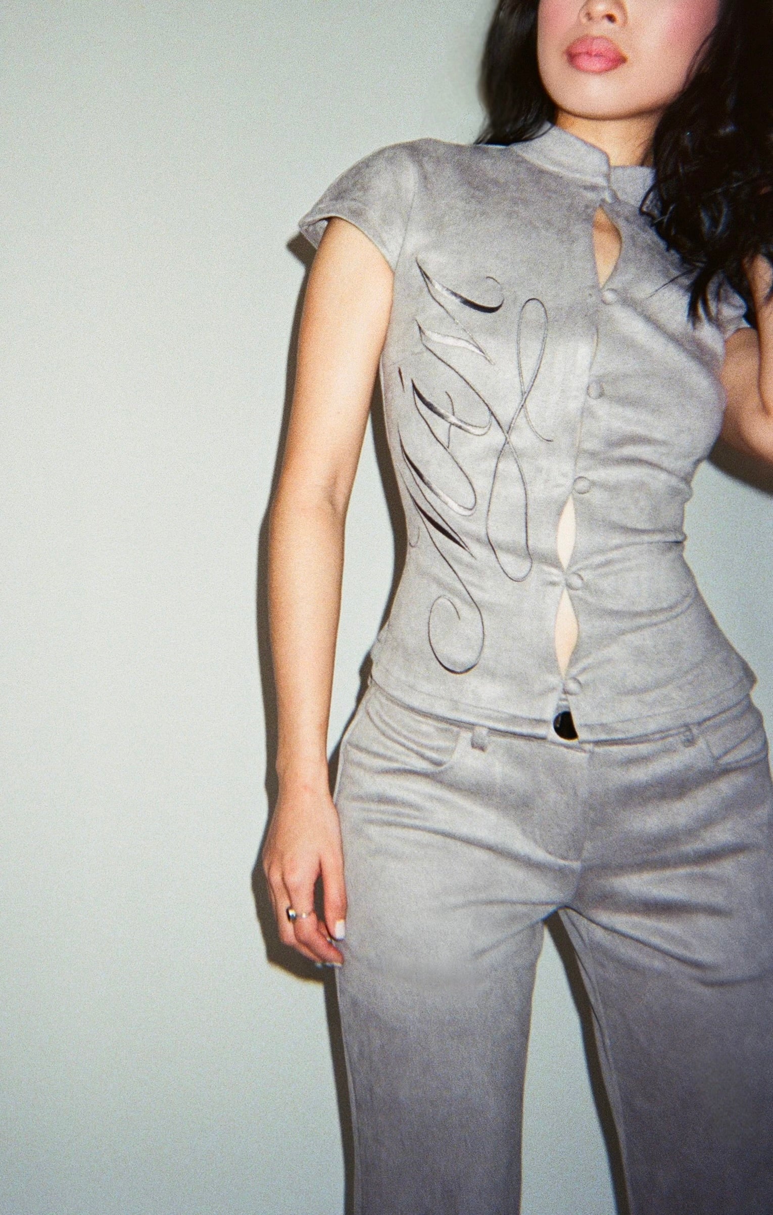 The Chantal Set is a modern take on timeless sophistication. Designed in a soft, suede-like fabric, this coordinated top and pant set offers a sleek, flattering fit.